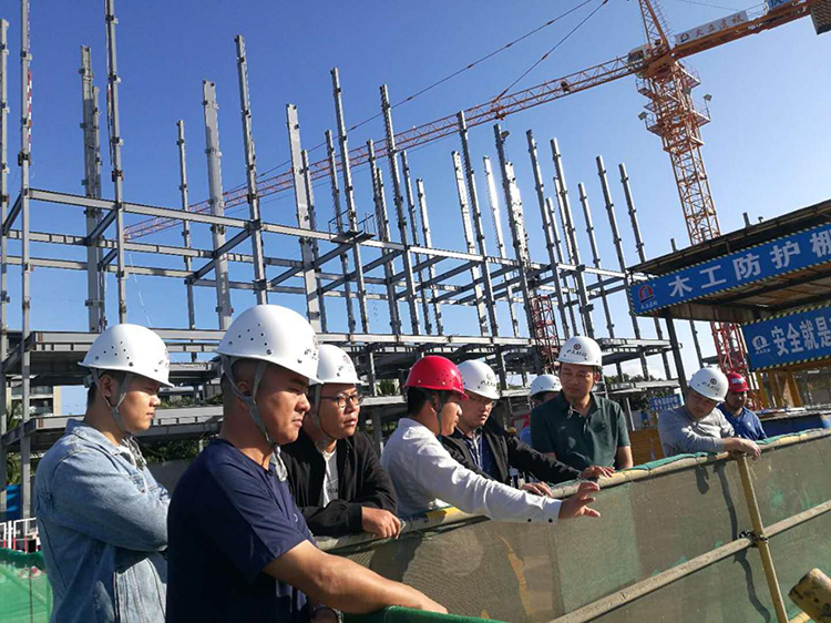 我司楊總分別帶領(lǐng)考察團(tuán)隊(duì)參觀了19#-22#樓、1#-5#樓的主體結(jié)構(gòu),以及16#、18#樓的地下室結(jié)構(gòu)?疾烊藛T詢問(wèn)了關(guān)于地下室柱腳與基礎(chǔ)筏板鋼筋連接處理節(jié)點(diǎn)、鋼結(jié)構(gòu)安裝進(jìn)度及裝配率等相關(guān)問(wèn)題,楊總分別針對(duì)這些問(wèn)題做了詳細(xì)講解,還特地介紹了隱式鋼框架的特點(diǎn)。接著又帶考察人員參觀了樣板區(qū)區(qū)域,考察人員對(duì)此給予了高度評(píng)價(jià)。