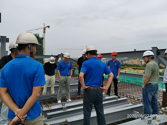 考察期間雙方針對樓棟的外墻陽臺防滲漏、梁柱及螺栓鉸接節(jié)點、BIM鋼梁腹板開洞系統(tǒng)、屋面排水系統(tǒng)等施工工藝進(jìn)行了深入交流?疾靾F(tuán)對綠城藍(lán)灣小鎮(zhèn)香樟苑的安裝進(jìn)度、結(jié)構(gòu)施工質(zhì)量、安全管控工作表示贊賞。同時要求后續(xù)施工加強管理,嚴(yán)把質(zhì)量關(guān),把綠城品牌做精、做細(xì),讓未來購房者受益。