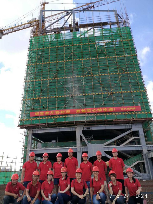 2017年6月24日,由我司承接的集設(shè)計(jì)、制造與安裝于一體的紅城湖商業(yè)廣場(chǎng)項(xiàng)目主結(jié)構(gòu)順利封頂。