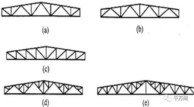 屋架的結構形式 : 屋架的結構形式主要取決于所采用的屋面材料和房屋的使用要求。主要以三角形屋架、三角拱屋架和梭形屋架、平坡梯形鋼屋架為主