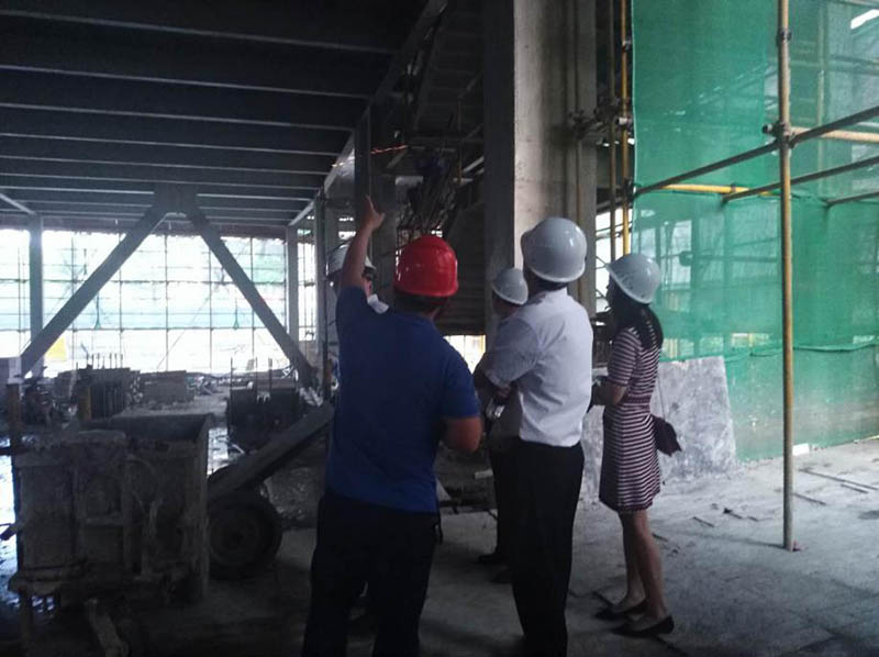 首先帶領考察團一行到27層考察了鋼結構的連接安裝,并了解防腐防火材料及樓承板的安裝和澆筑,隨后來到25層參觀了砌體結構及樣板間等。
