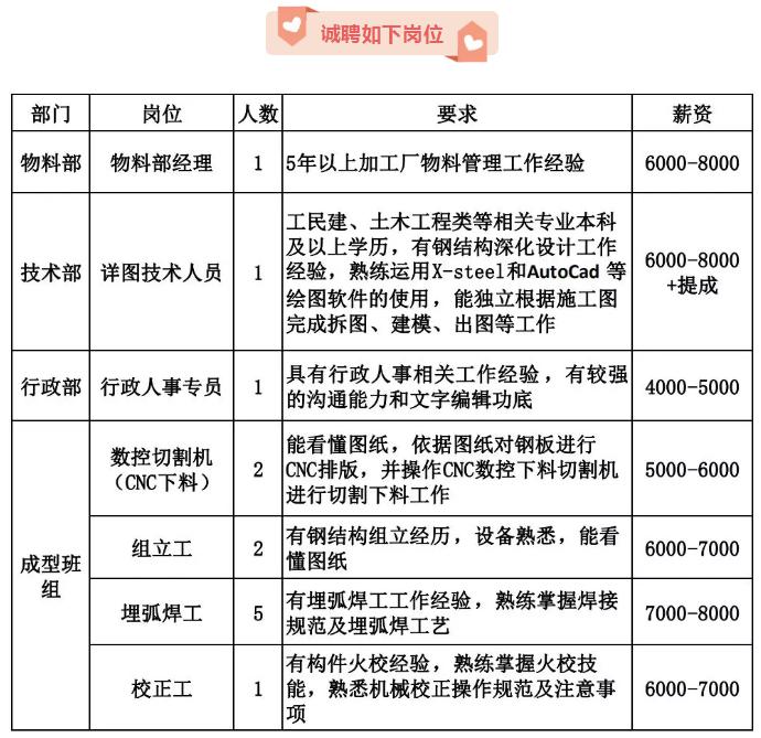 鋼構(gòu)加工廠人事招聘