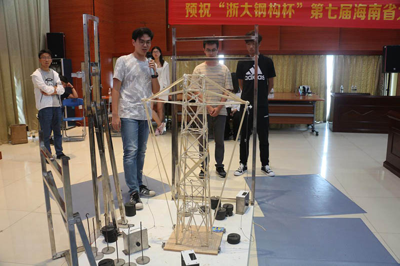 6月7日至9日,海南浙大鋼構(gòu)有限公司冠名贊助的全國大學(xué)生結(jié)構(gòu)設(shè)計競賽海南分區(qū)選拔賽暨“浙大鋼構(gòu)杯”第七屆海南省大學(xué)生結(jié)構(gòu)設(shè)計競賽在海南大學(xué)舉辦。海南大學(xué)、?诮(jīng)濟學(xué)院、海南科技職業(yè)大學(xué)3所高校的49支隊伍參賽。
