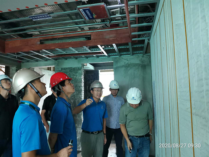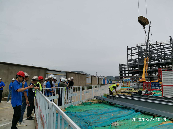 考察期間雙方針對樓棟的外墻陽臺防滲漏、梁柱及螺栓鉸接節(jié)點、BIM鋼梁腹板開洞系統(tǒng)、屋面排水系統(tǒng)等施工工藝進(jìn)行了深入交流?疾靾F(tuán)對綠城藍(lán)灣小鎮(zhèn)香樟苑的安裝進(jìn)度、結(jié)構(gòu)施工質(zhì)量、安全管控工作表示贊賞。同時要求后續(xù)施工加強管理,嚴(yán)把質(zhì)量關(guān),把綠城品牌做精、做細(xì),讓未來購房者受益。