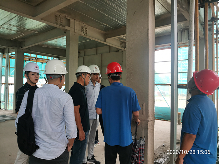 在萬寧臻園項目,考察團考察了現(xiàn)場的施工情況,彭經(jīng)理為考察團詳細講解了我司的專利技術——隱式鋼框架支撐結(jié)構(gòu)體系,并觀看了陵水綠城香樟苑項目的施工視頻,雙方就鋼結(jié)構(gòu)隱式框架體系如何更好的實現(xiàn)裝配率的各種方案進行了深入交流?疾旖M著重關注成本、裝配率、工期、鋼結(jié)構(gòu)和其他材料界面的處理工藝。