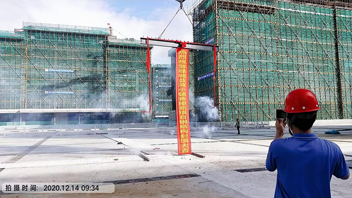 2020年12月14日上午09:30分,由浙大鋼構(gòu)承建的綠城陵水香樟苑鋼結(jié)構(gòu)裝配式住宅項(xiàng)目施工現(xiàn)場(chǎng)封頂儀式隆重舉行。業(yè)主方申總、沈工、吉工,監(jiān)理袁總等共同出席。
