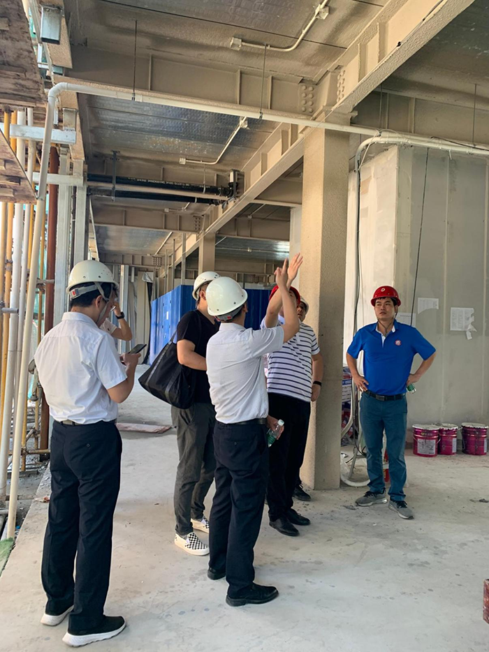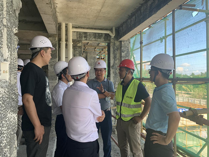 2021年5月18日下午,考察團到融創(chuàng)(碧桂園)萬寧海南臻園項目現(xiàn)場考察,詳細了解了結(jié)構(gòu)形式、墻體材料、施工工藝、施工速度、鋼結(jié)構(gòu)使用的鋼柱、鋼梁原材料供應情況、寬鋼管柱的加工、采購流程及工藝等方面,重點了解了隱式框架節(jié)點。李秘書長提出:鋼結(jié)構(gòu)建筑可以通過提高材質(zhì)等級,將構(gòu)件截面尺寸、厚度進一步減小,滿足住宅建筑適應性同時給建筑更大使用空間;并提出住宅鋼結(jié)構(gòu)的構(gòu)件規(guī)格應該進行標準化設計,方便成品型材采購及智能制造。