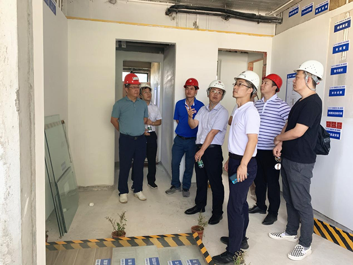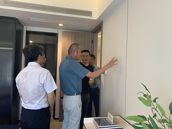 隨后,考察團蒞臨藍灣小鎮(zhèn)中心樣板樓。該樓棟主體鋼結(jié)構(gòu)由我司施工,目前已經(jīng)完成了精裝修并對外展示。綠城高地公司徐總詳細介紹了應用在該樣板樓的裝配式墻板、裝配式樓板、整體衛(wèi)浴等目前國內(nèi)領先的裝配式綠色環(huán)保材料,并實地體驗應用效果。徐總表示,小鎮(zhèn)中心組團樣板樓應用了裝配式鋼結(jié)構(gòu)、裝配式墻體結(jié)構(gòu)、裝配式整體衛(wèi)浴等一系列裝配式部品部件,是裝配式主體結(jié)構(gòu)、二次結(jié)構(gòu)以及裝配式內(nèi)裝的完美結(jié)合。能夠從根本上解決墻板開裂及滲漏水等問題,同時也徹底解決了傳統(tǒng)內(nèi)裝的質(zhì)量通病,大大提高了裝配率及施工速度,一定是未來裝配式建筑的發(fā)展趨勢。