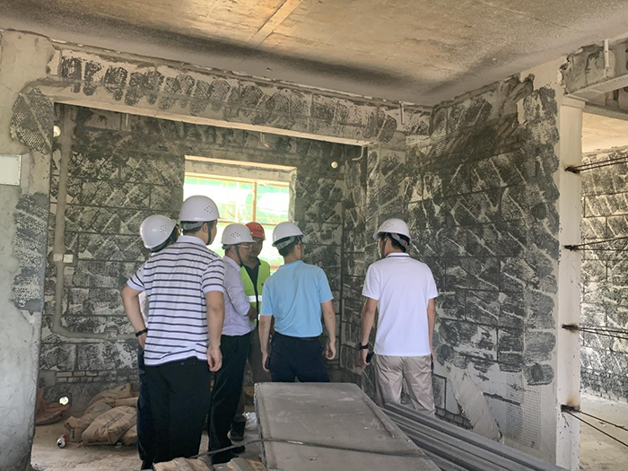 考察團詳細了解了香樟苑項目施工過程中的工序、工期及技術條件并參觀了香樟苑項目施工現(xiàn)場,我司項目經(jīng)理對項目信息、鋼結(jié)構(gòu)與圍護墻體、砌體、裝修等節(jié)點處理問題進行講解。在樣板間,李秘書長對綠城施工質(zhì)量的控制表示認可,對于鋼結(jié)構(gòu)與墻體節(jié)點的處理方式給與好評,對于鋼結(jié)構(gòu)與條板墻之間的開裂隱患比較關注,我司項目經(jīng)理及張衛(wèi)東總對此問題的處理方法進行了詳細講解。
