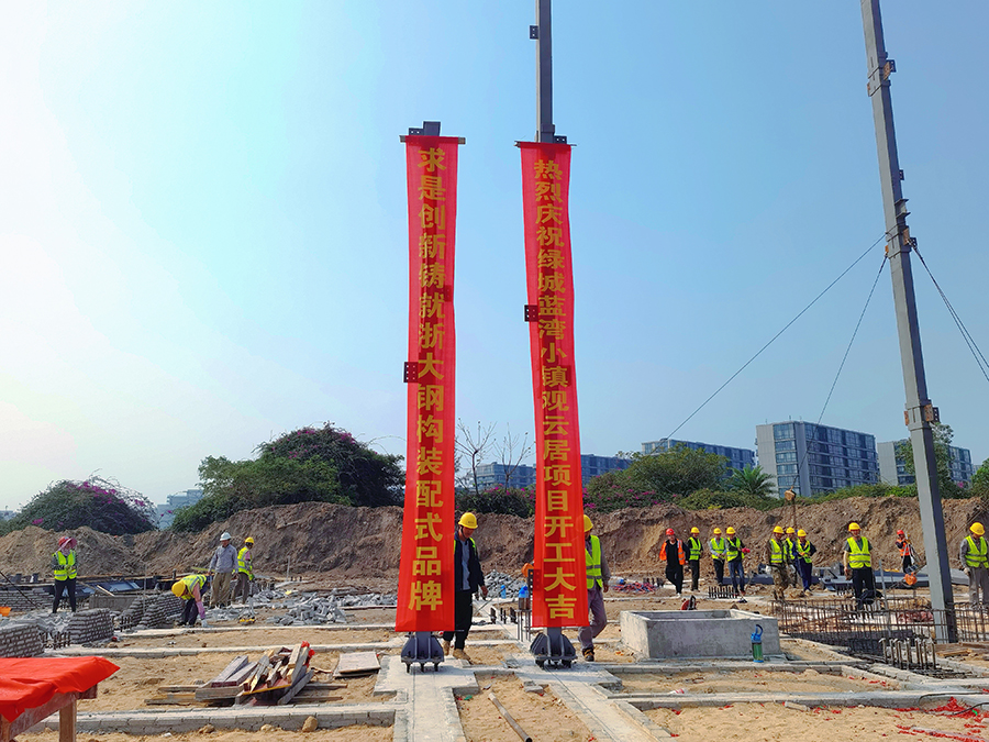2023年2月25日上午10點08分,在甲方、監(jiān)理等領導的共同見證下,由浙大鋼構承建的海南綠城藍灣小鎮(zhèn)繼2019年開工的香樟苑項目以來,第六個鋼結構裝配式高端住宅項目——觀云居鋼結構工程項目首根鋼柱吊裝順利完成,開工儀式圓滿舉行,項目宣告正式進入鋼結構主體施工階段。