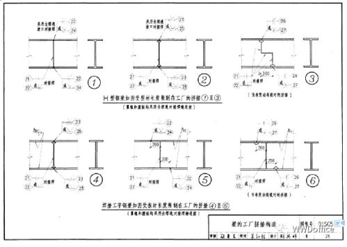 3、梁上附件不允許焊接在拼縫位置,要求錯(cuò)縫不應(yīng)小于100mm;如滿足不了,則在焊接 附件前要對(duì)主件拼縫進(jìn)行NDE檢查。4、梁長(zhǎng)度不大于15m,拼縫只允許在梁兩端1/3處且只允許各有1條;梁長(zhǎng)度在15m~35m, 翼緣板與腹板允許各有三條拼縫,但絕對(duì)不允許在梁中間及中間左右各1m范圍內(nèi)有拼縫。