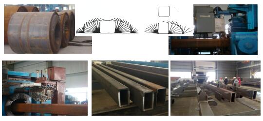 2、扁鋼管柱的工廠機(jī)械化生產(chǎn)